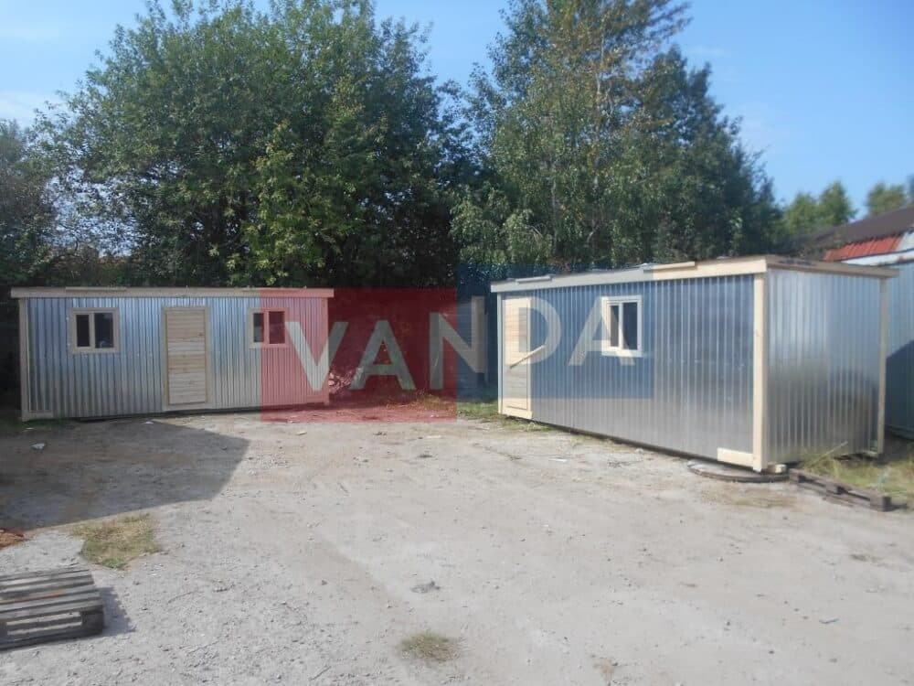 Существует и металлический вариант строительных бытовок, их еще называют блок-контейнерами. Как и деревянные аналоги, они имеют раму, только металлическую. Стены их состоят из сэндвич - панелей или профильных листов. Крыша оцинкована, помещение так же имеет утеплитель, звукоизоляцию, для этой цели предусмотрен небольшой зазор между крышей и основным потолком.